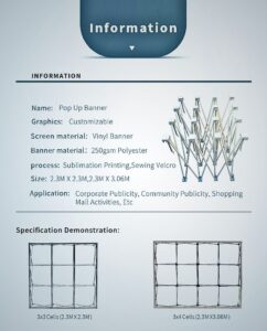 – **Packaging and Shipping**: Each pop-up display is securely packed in a durable carrying case and shipped in protective packaging to ensure it arrives in perfect condition. We offer global shipping to meet your needs wherever you are.