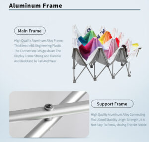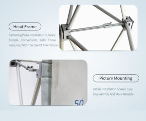 – **Easy Setup**: Features a user-friendly design that allows for quick and effortless assembly and disassembly. The frame simply “pops up” and locks into place, allowing you to set up your display in minutes.